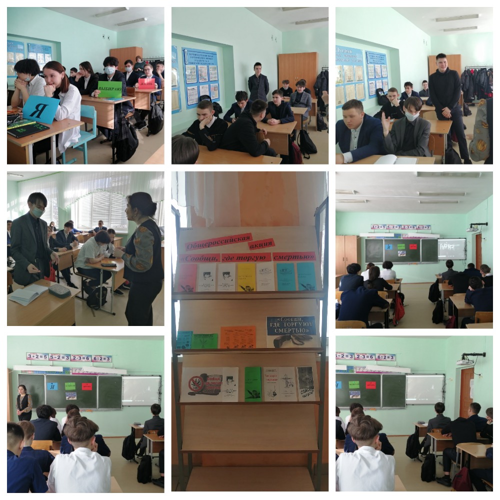 В рамках Общероссийской акции "Сообщи, где торгуют смертью" 23 марта 2022 года социальный педагог Багаува Л. Ф. провела классный час в 9а классе на тему:"Наркотики - путь в никуда". Цель занятия - способствовать формированию знаний о вреде наркомании, росту самосознания и самооценки подростков. Также на этом занятии ребята посмотрели фильм общественной организации "Общее дело" "Наркотики. Секреты манипуляции".