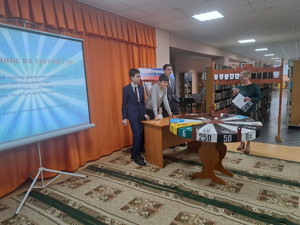 8 декабря в центральной районной модельной детской библиотеке для учащихся 8 а класса прошла познавательно – игровая программа «Поле чудес», посвященная Дню Конституции Российской Федерации.