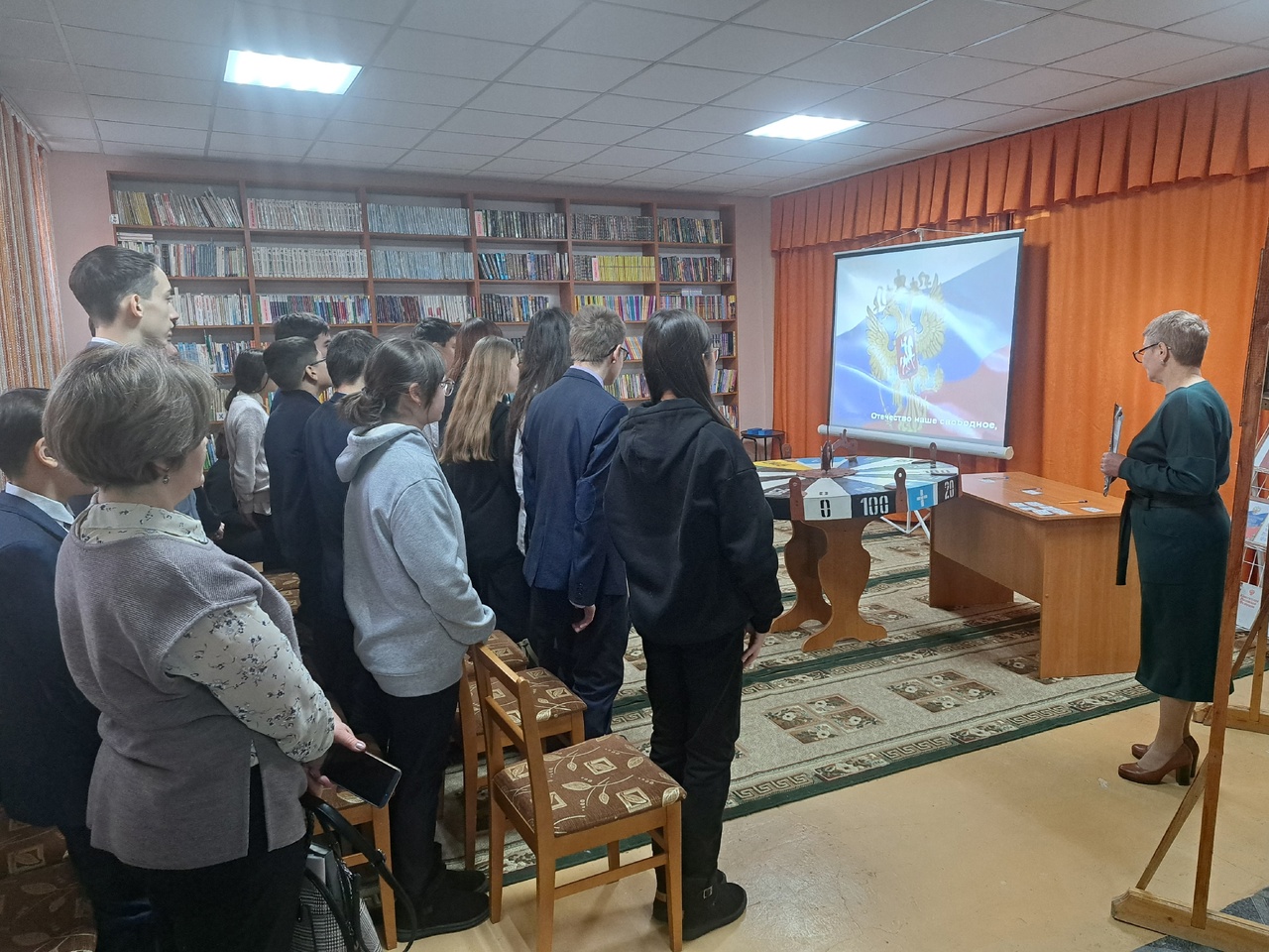 В начале мероприятия библиотекарь рассказала об истории праздника и государственной символике РФ. Затем ознакомила с правилами игры. Для отбора игроков ребята отгадывали вопросы по конституции РФ. В игре приняли участие 9 человек. Задания каждого тура были посвящены государственной символике РФ. Побеждал тот, кто правильно называл слово. В конце каждого тура участники получали небольшие подарки. В завершении игры библиотекарь провела обзор книжной выставки «Россия – Родина моя», и все ребята получили памятные призы.