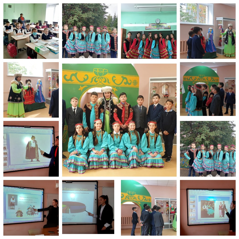 11 сентября день национального костюма. В нашей республике живут представители 164 национальностей, у каждой из них есть свои исторические и культурные особенности. Этот праздник даёт возможность ещё раз обратиться к истории и культуре наших предков. Данный праздник прошел и в МБОУ СОШ № 1 г. Янаул. Учащиеся младших классов подошли к этому празднику творчески. На тему «Башкирский национальный костюм» из рисунков и фотографий были организованы выставки. Ученики старших классов участвовали в конкурсе презентаций на тему «Национальные костюмы народов Республики Башкортостан». Для учеников была организована экскурсия, где были представлены башкирские национальные костюмы семи регионов Республики Башкортостан.
