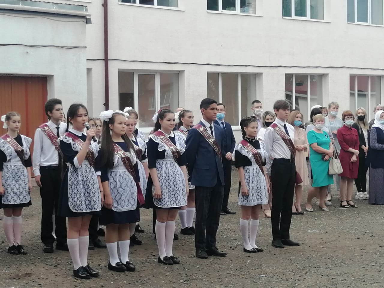 На торжественной линейке прозвучали напутственные слова учителей и родителей. Выпускники со своей стороны поблагодарили всех, кто поддерживал их во время учёбы в школе.