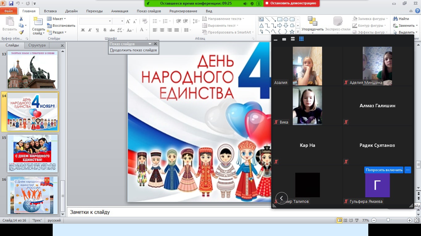 4 ноября с обучающимися 5 в класса был проведен классный час " День народного единства" в онлайн формате.